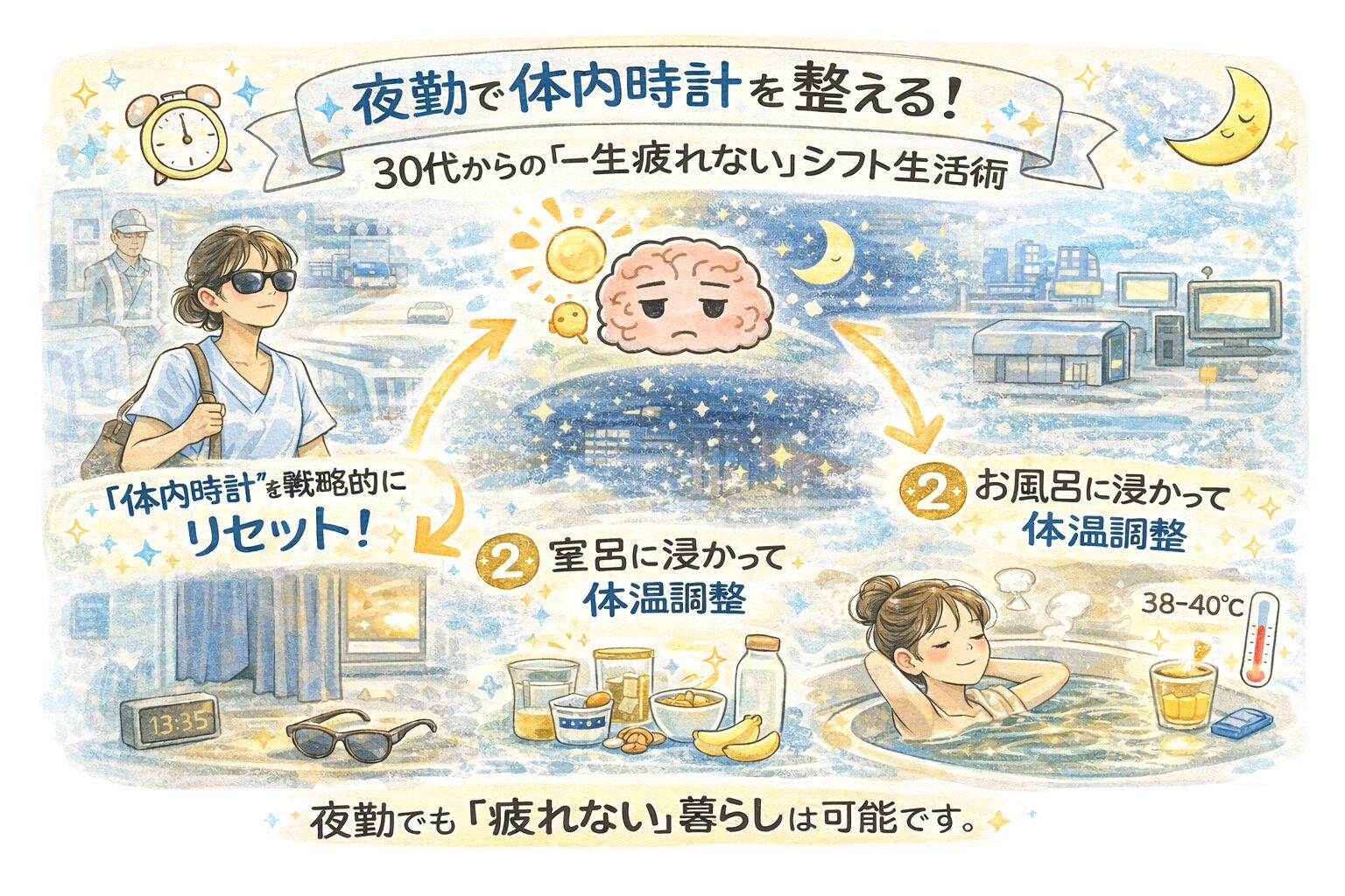 本記事では、30代・40代のシフト勤務者が、明日からすぐに実践できる「体内時計の整え方」を具体的に伝授します。夜勤という働き方を続けながら、かつてのようなハツラツとした自分を取り戻す。そのための科学的な休息戦略を、今ここで手に入れましょう。